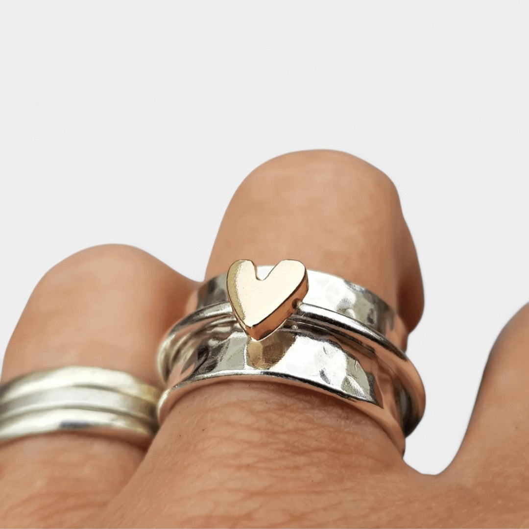 Γαλήνη - ρομαντικό ασημένιο δαχτυλίδι με χρυσή καρδιά