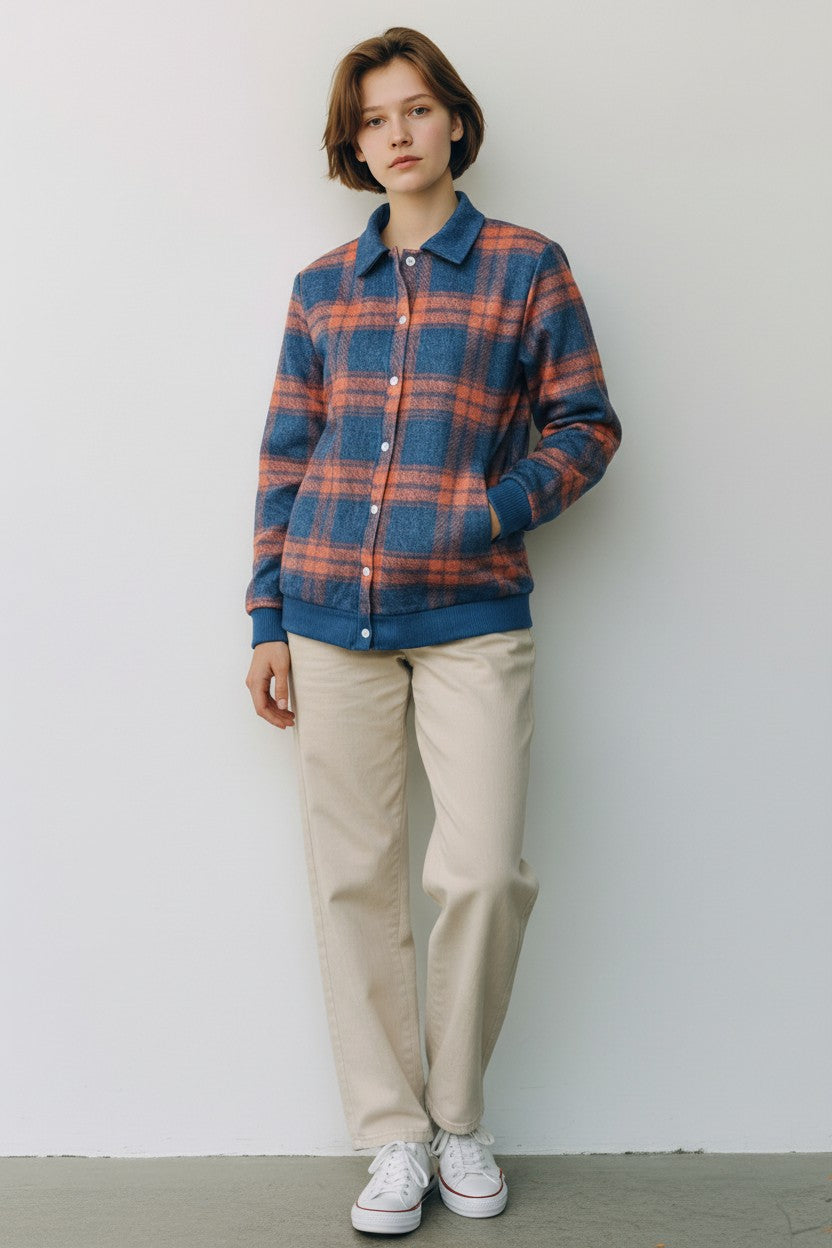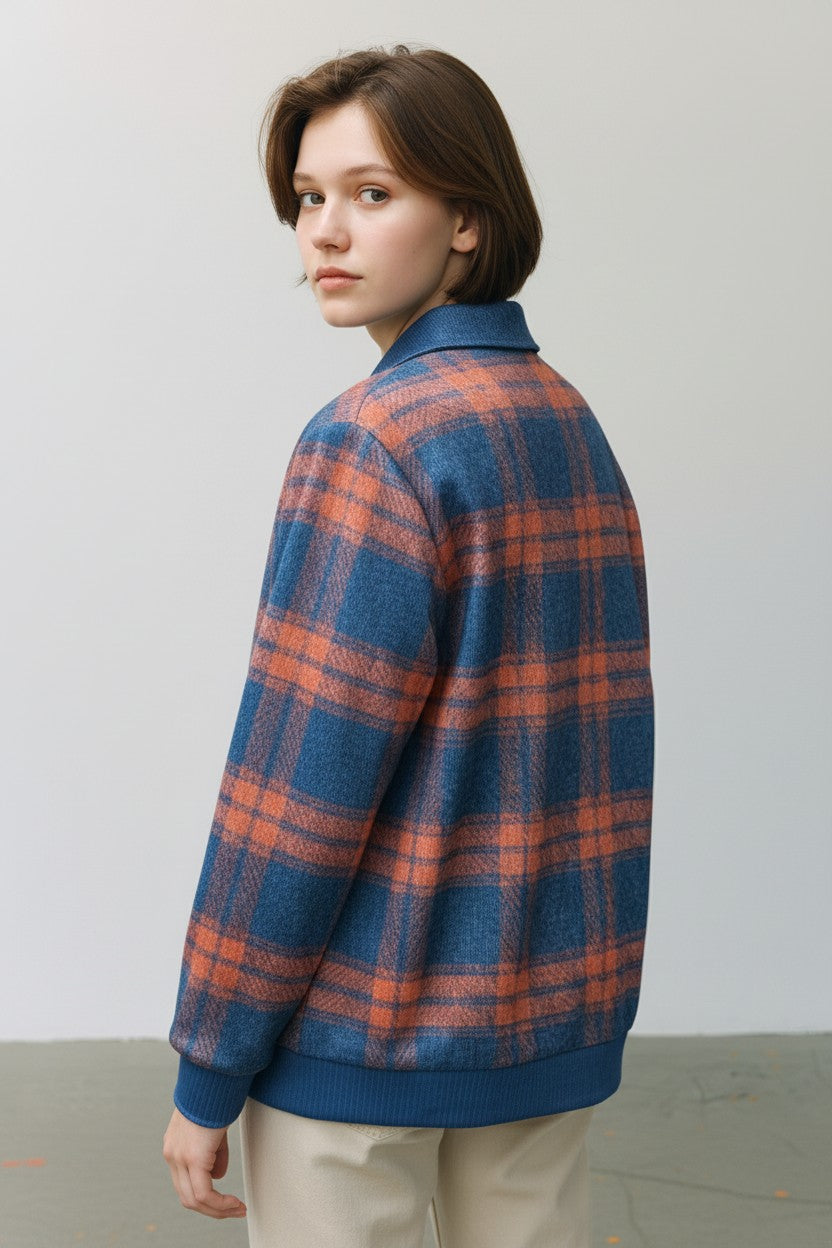• Μοντέρνα Διχρωμία - Ο μονόχρωμος μπλε γιακάς και η πατιλέτα δημιουργούν μια κομψή αντίθεση με το ζωντανό καρό μοτίβο, δίνοντας έναν σύγχρονο και φρέσκο αέρα σε ένα κλασικό σχέδιο.