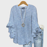 Αναδείξτε το κλασικό σας στυλ με αυτήν τη μπλούζα σε μπλε απόχρωση με κάθετες λευκές ρίγες. Ο μινιμαλιστικός σχεδιασμός της συνδυάζει κομψότητα και πρακτικότητα, ενώ τα μανίκια με βολάν προσθέτουν θηλυκότητα και κίνηση. Ιδανική για καθημερινές εμφανίσεις αλλά και πιο επίσημες περιστάσεις.