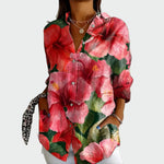 Το μακρυμάνικο πουκάμισο με έντονα λουλουδάτα μοτίβα σε αποχρώσεις του κόκκινου και του ροζ προσθέτει ζωντάνια και καλοκαιρινή διάθεση σε κάθε εμφάνιση. Ο κλασικός γιακάς και το κουμπωτό σχέδιο το καθιστούν ευέλικτο, ιδανικό για casual αλλά και πιο κομψές περιστάσεις.