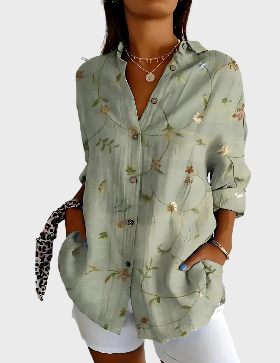 Μπλούζα με Κουμπιά και Λουλουδάτο Σχέδιο