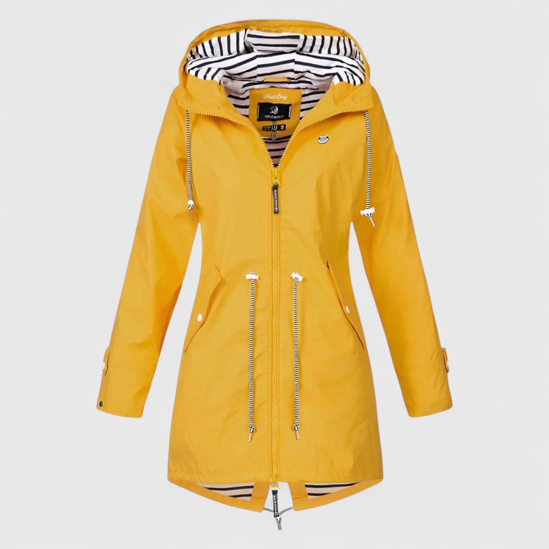 Με το Φωτεινή - Κομψό αδιάβροχο γυναικείο μπουφάν με διακριτική λάμψη, απολαμβάνεις απόλυτη προστασία από τη βροχή συνδυασμένη με κομψότητα για κάθε εποχή.