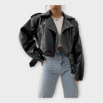 Κοντό Δερμάτινο Μπουφάν με Ζώνη