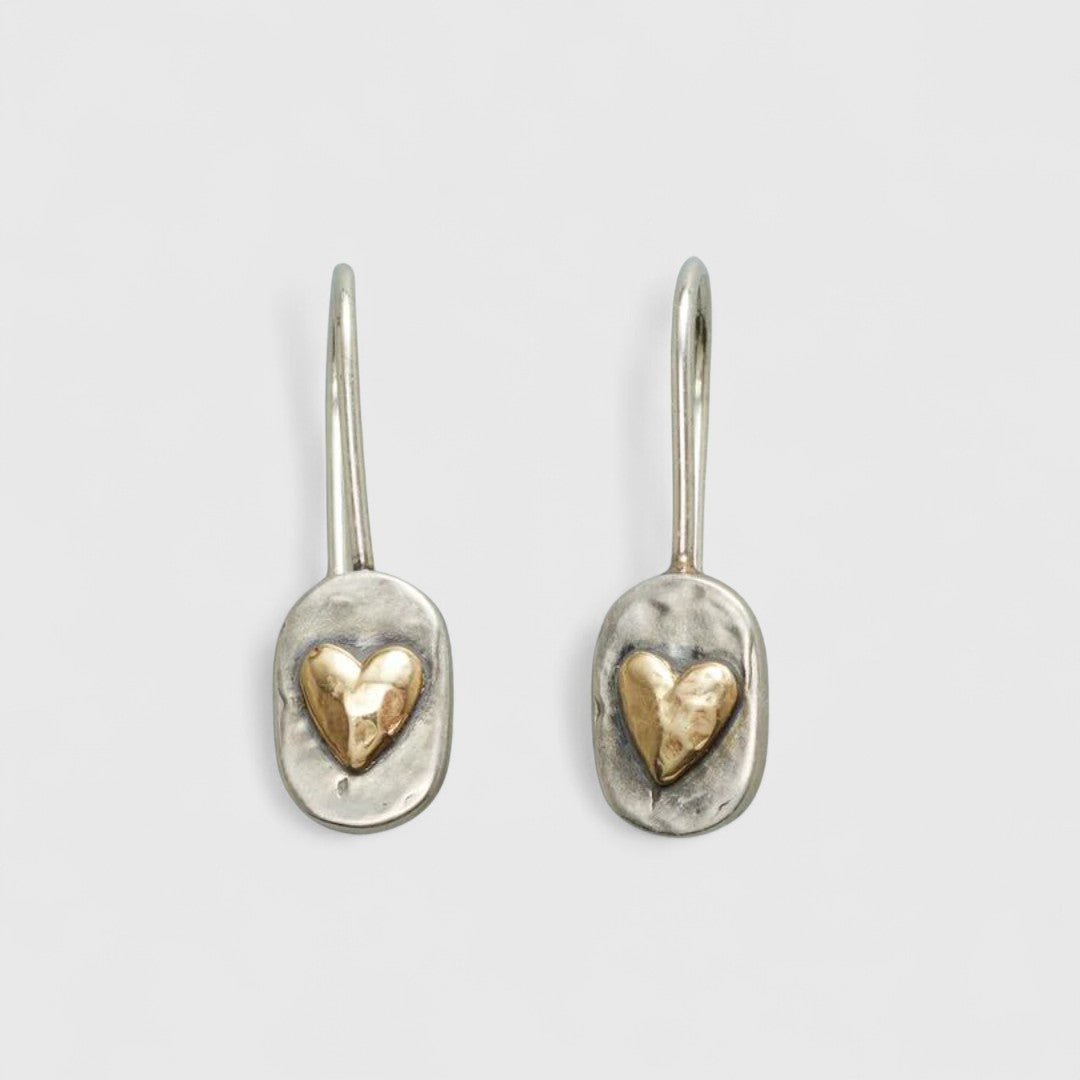 Δωροθέα - Σκουλαρίκια καρδιάς σε ασήμι και χρυσό με διακριτική λάμψη
