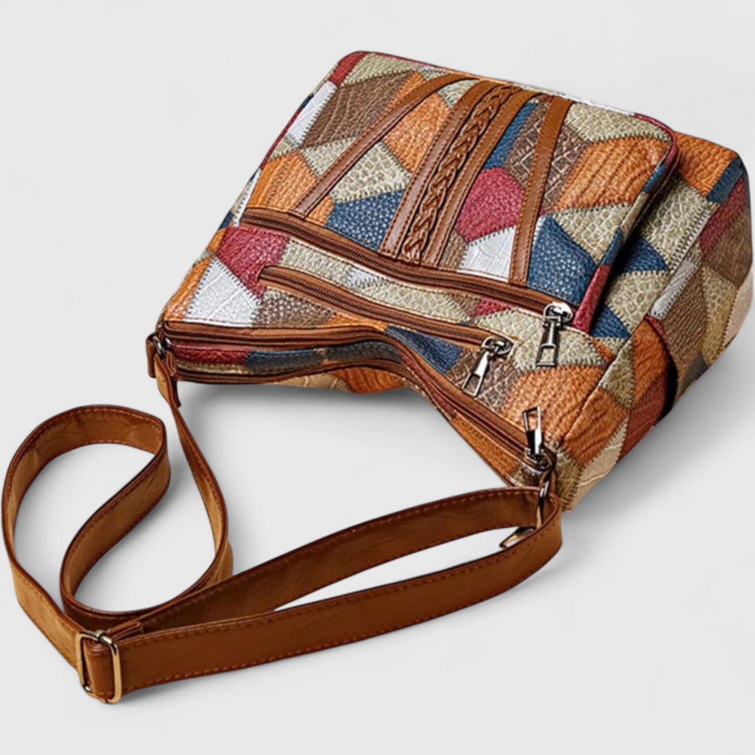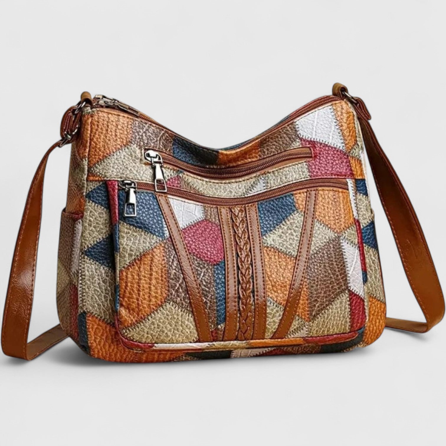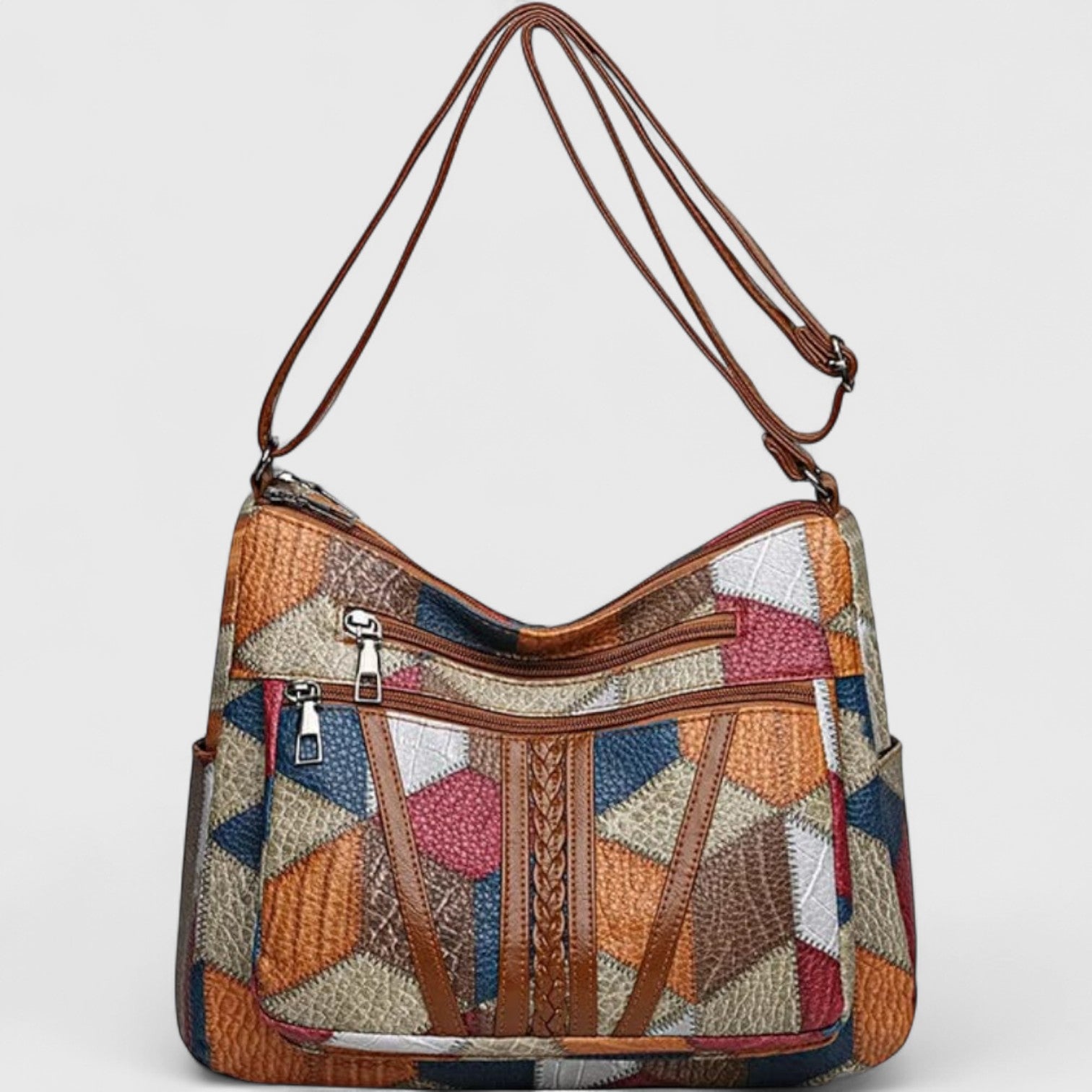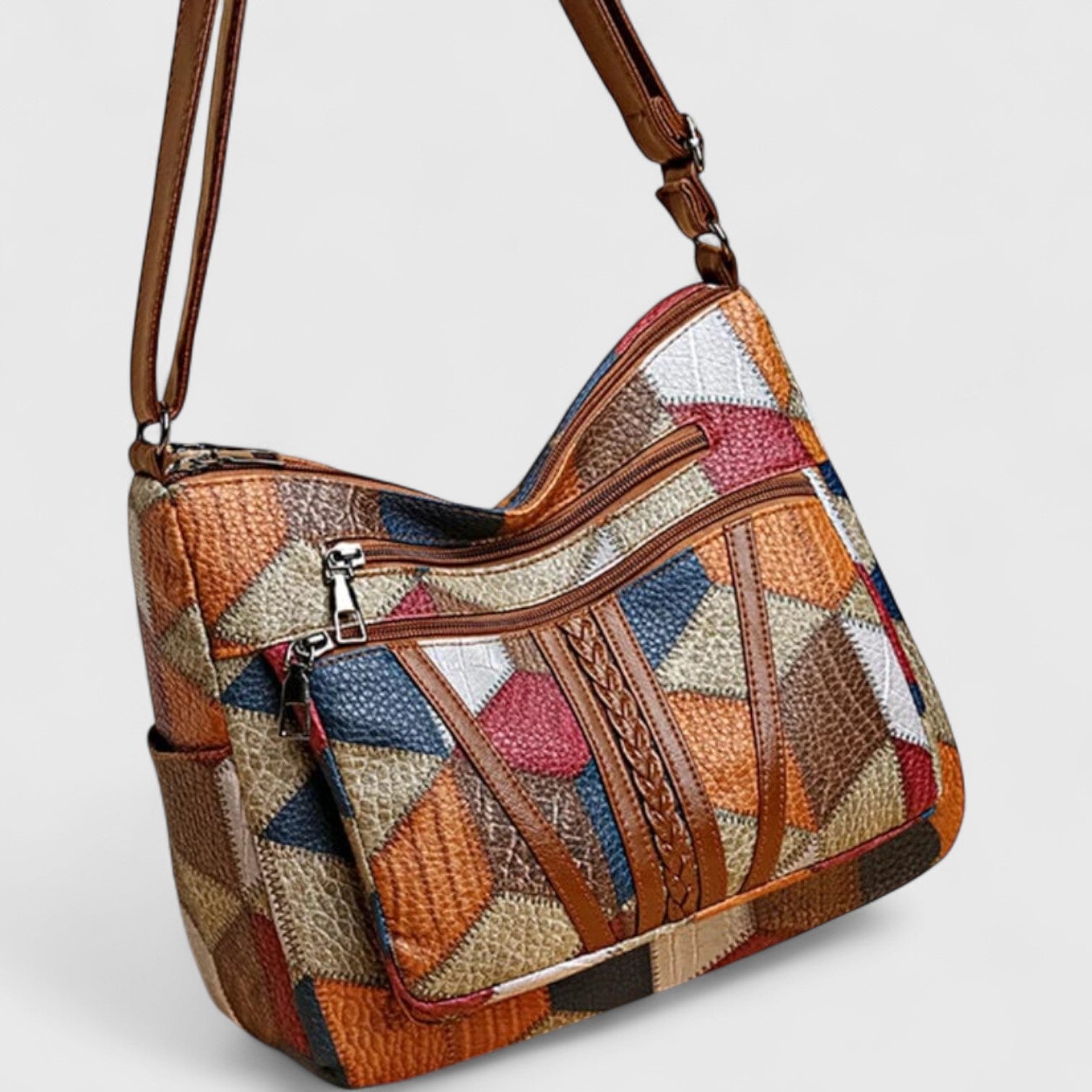 Ρέα - Δερμάτινη τσάντα με μωσαϊκό σχέδιο και εκλεπτυσμένο στυλ