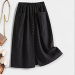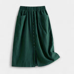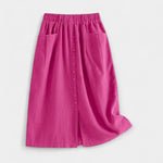 Φυσική υφή και ανεπιτήδευτο στυλ σε μια φούστα που συνδυάζει ρετρό γοητεία με καθημερινή πρακτικότητα. Η υψηλή μέση αγκαλιάζει θηλυκά τη σιλουέτα, ενώ οι μπροστινές τσέπες προσφέρουν άνεση και λειτουργικότητα.