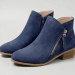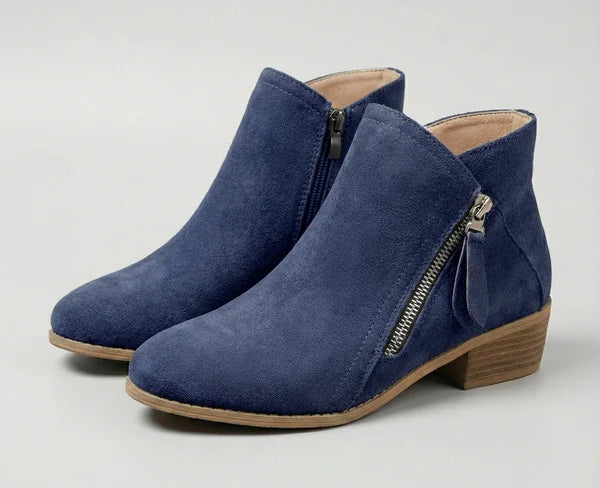 Αποκτήστε ένα αβίαστο στυλ με αυτά τα ευέλικτα μποτάκια, σχεδιασμένα για να προσφέρουν άνεση, κομψότητα και πρακτικότητα στην καθημερινή σας γκαρνταρόμπα. Με το λείο φινίρισμα, το πλαϊνό φερμουάρ και την καθαρή γραμμή τους, ταιριάζουν τέλεια με τζιν, φορέματα και φθινοπωρινά ρούχα, καθιστώντας τα απαραίτητα για κάθε εποχή. Ο χαμηλός τακούνι προσφέρει την ιδανική ανύψωση, διατηρώντας σας άνετη όλη την ημέρα, ενώ η ποικιλία των όμορφων χρωμάτων σας επιτρέπει να επιλέξετε το ζευγάρι που ταιριάζει καλύτερα στο προσωπικό σας στυλ.