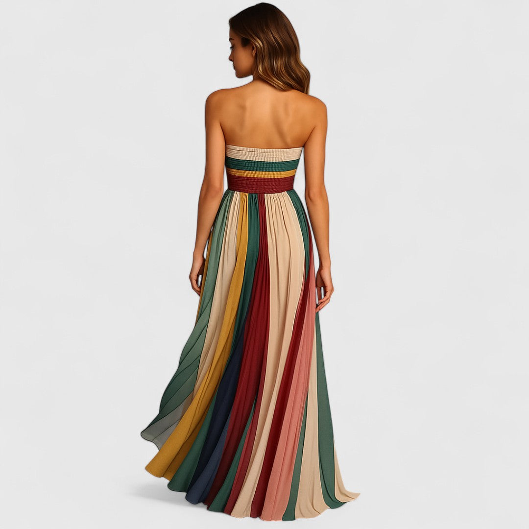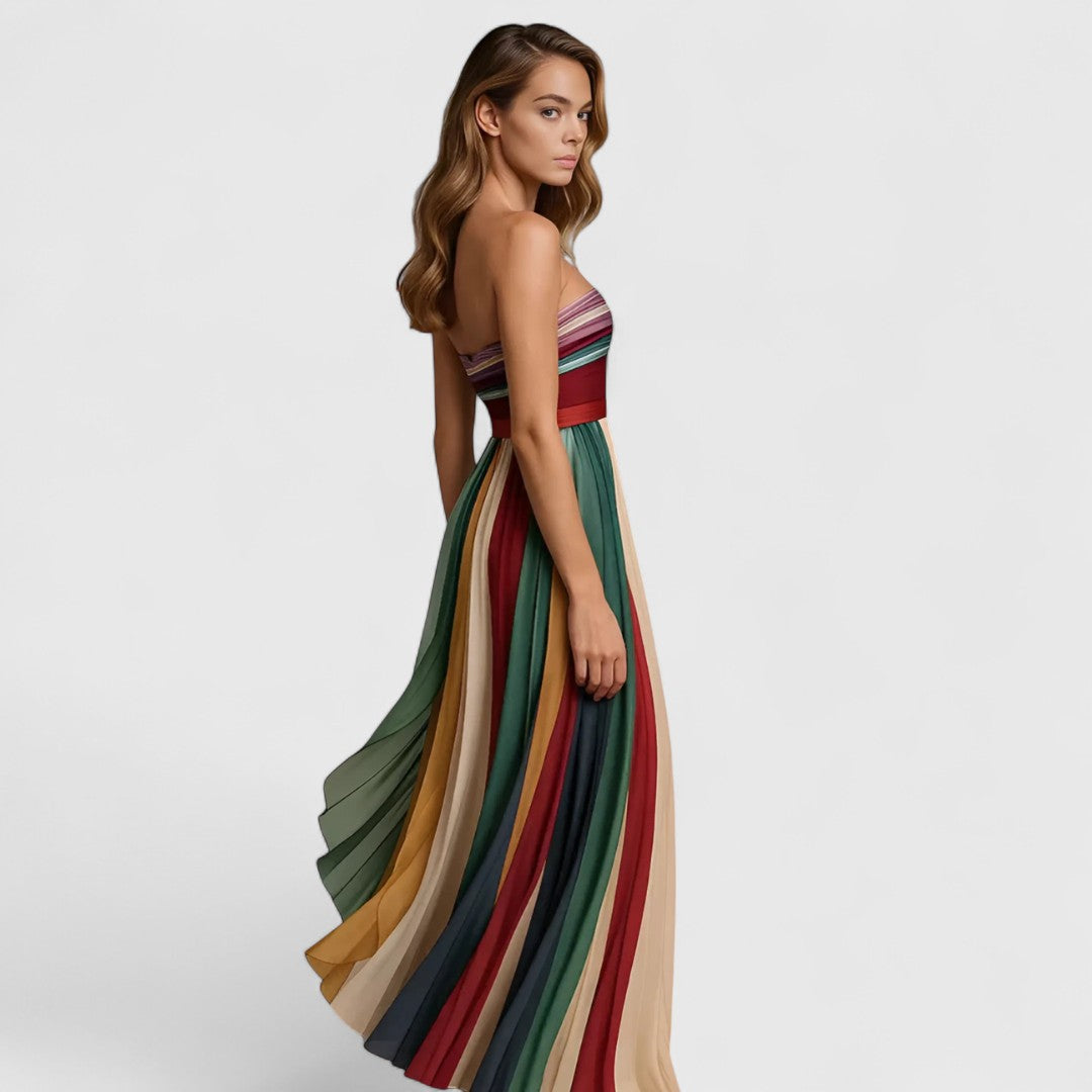 Γλυκερία - Μακρύ φθινοπωρινό φόρεμα με ζωηρά χρώματα και αέρινη εφαρμογή