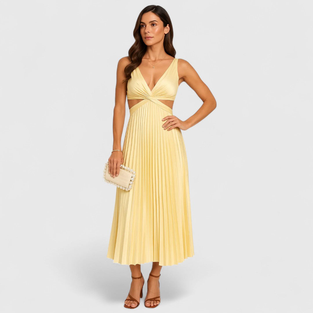 Το Ίριδα - Πλισέ φόρεμα midi φέρνει εκλεπτυσμένη φινέτσα και άνετη γραμμή, ιδανικό για να σε συντροφεύει σε κάθε επίσημη περίσταση.