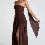 Αυτό το strapless maxi φόρεμα αποπνέει διαχρονική κομψότητα και θηλυκότητα. Ιδανική επιλογή για βραδινές εμφανίσεις και επίσημες περιστάσεις.
