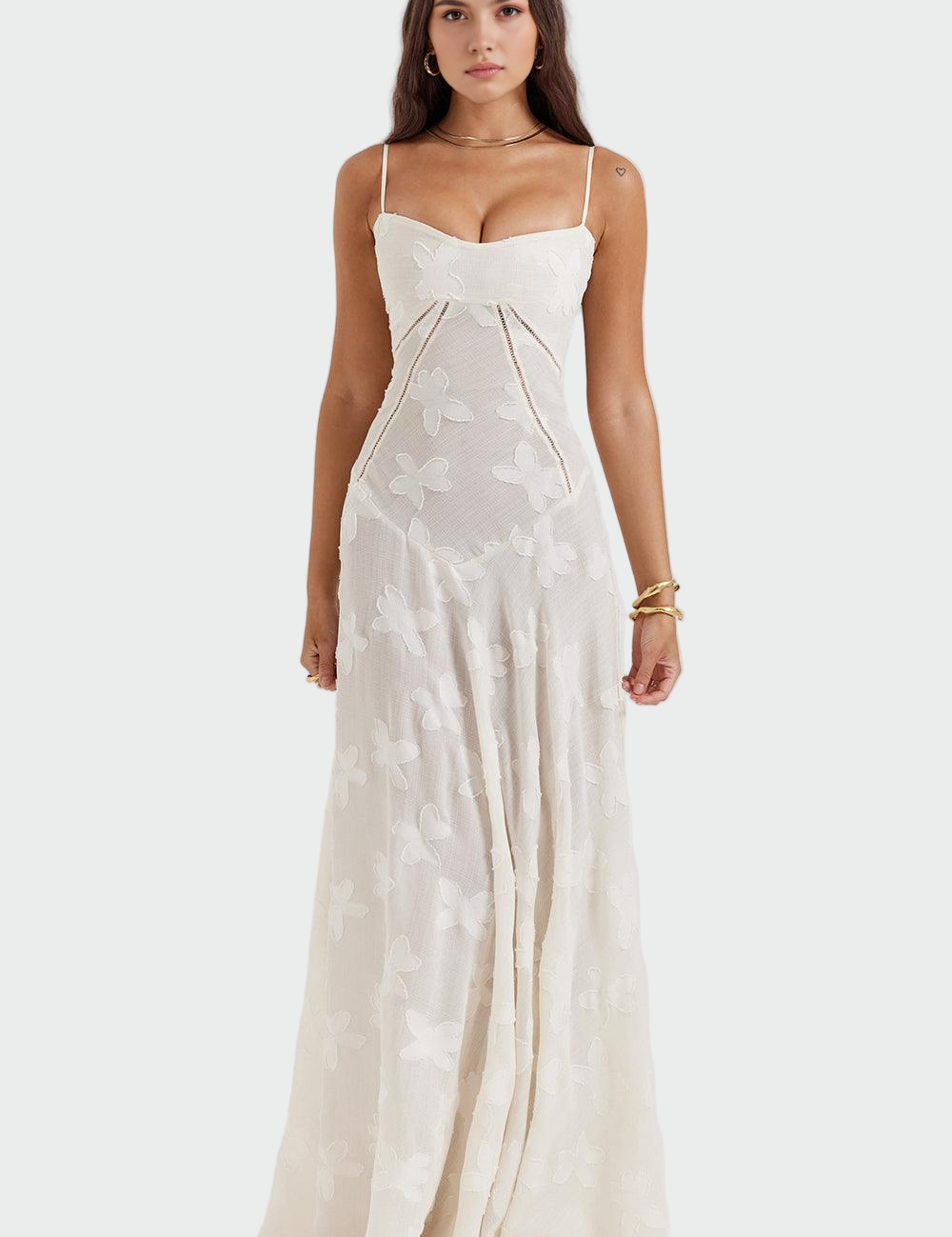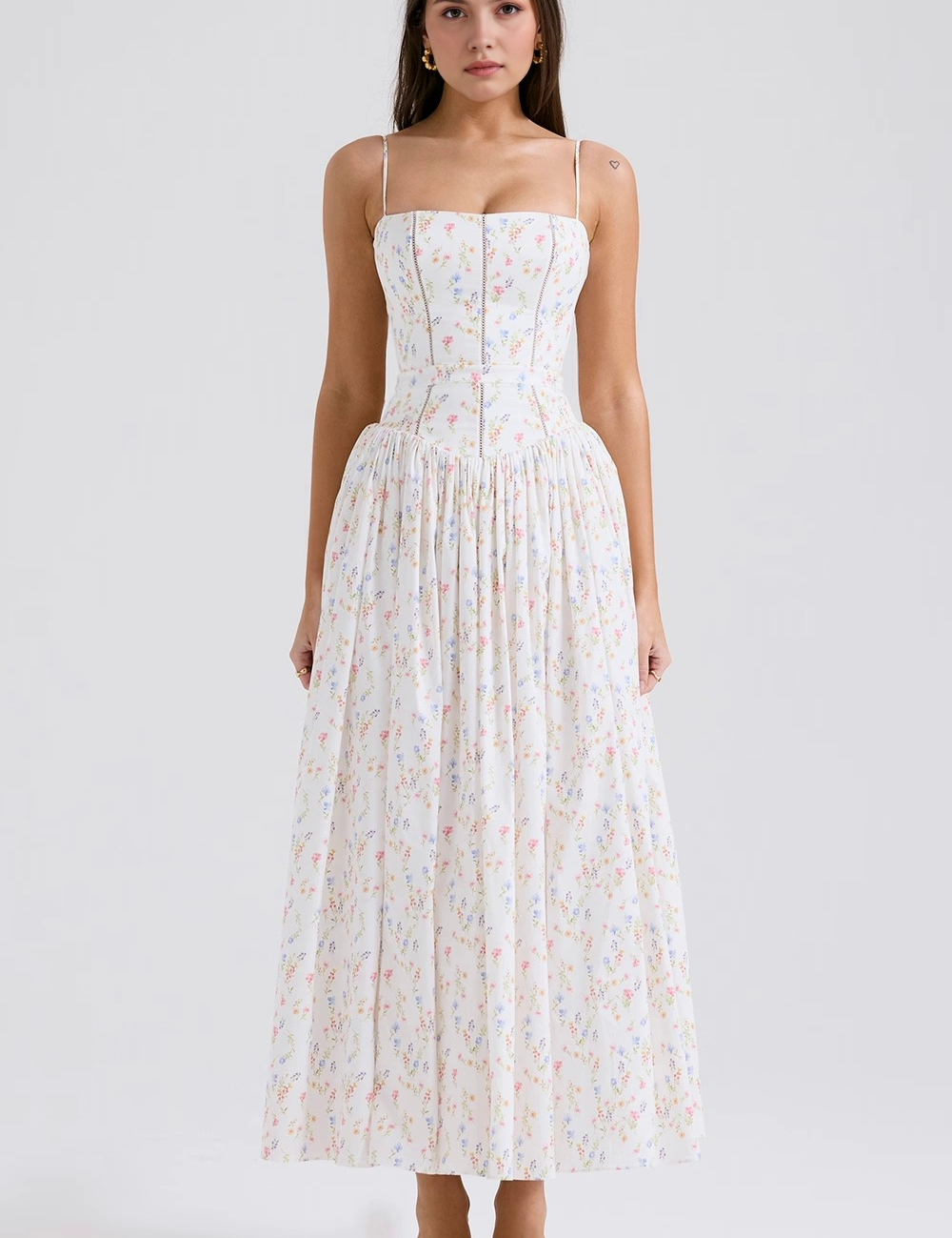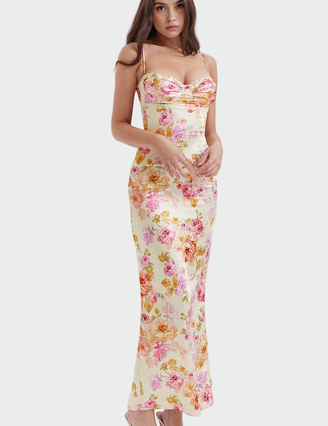 Φόρεμα Maxi με Λεπτές Τιράντες και Φλοράλ Σχέδιο
