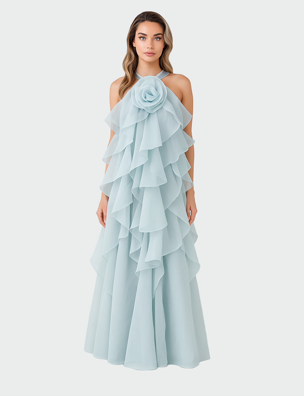 Λόρα | Μακρύ Ντραπαριστό Φόρεμα με Κολιέ-Κόρσαζ