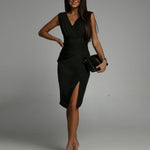 Εφαρμοστό φόρεμα με V ντεκολτέ και σκίσιμο