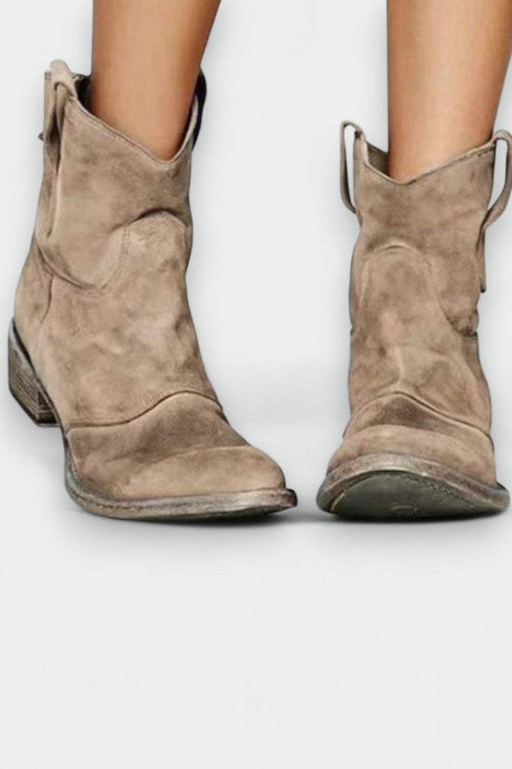 Κάντε μια δήλωση μόδας με τα Carlotta – Μποτίνια, που συνδυάζουν έναν χαλαρό δυτικό στυλ με διαχρονική λειτουργικότητα. Οι χαρακτηριστικές ραφές, η ελαφρώς στρογγυλεμένη μύτη και το άνετο τακούνι-μπλοκ εξασφαλίζουν αυθεντική εμφάνιση και μεγάλη άνεση κατά τη χρήση. Οι πλαϊνές θηλιές διευκολύνουν το φόρεμα και το βγάλσιμο των παπουτσιών και ολοκληρώνουν τέλεια τον λειτουργικό σχεδιασμό. Είτε για τον ελεύθερο χρόνο, το γραφείο είτε για έναν περίπατο στην πόλη, αυτά τα μποτίνια είναι ένας ευέλικτος σύντροφος για κάθε μέρα.